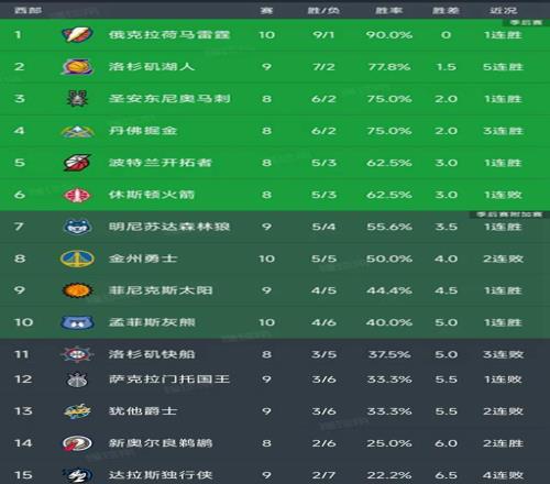 NBA西部最新积分榜:雷霆第1,湖人第2,火箭下滑第6,勇士第8