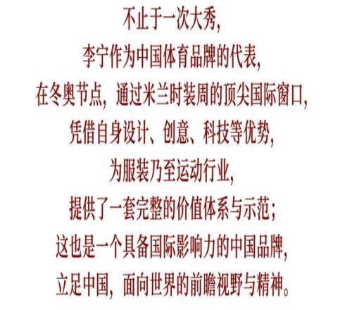 2026米兰冬奥会的脚步渐渐临近,为这座古老的城市渲染上一层独特的冰雪气息。大秀前夕,一抹亮眼的中国红,投射于米兰大教堂前,“中国李宁”方印落地于此。方印作为中国传统文化的代表性符号,此刻与西方经典建筑杰作巧妙同框,无疑正在上演一场东西方文化的交融碰撞。 步入中国李宁「THE ATHLETE IN ALL OF US」2026秋冬系列秀场,仿佛开启了一段充满复古气息的高山冰雪之旅。高山火车站首先映入眼帘,检票口、站台指引牌、候车厅以及长廊尽头的小火车,牵引人们步步深入,小火车里还能近距离看到历届李宁品牌经典领奖服,一同回溯中国体育的荣耀时刻。 地点:Padiglione Visconti 怀旧色调渐渐过渡至纯白雪景,来到主秀场,视野被辽阔的雪场景观无限放大,冬季运动竞技场跃现眼前。取自专业滑雪赛道与运动员舒展姿态的动态轨迹与空间张力,令秀场氛围更加真实而沉浸。 李宁品牌创始人、集团董事长李宁先生,演员成龙与乒乓球奥运冠军、李宁品牌代言人马龙亮相秀场,见证大秀发布。新颖独特、身临其境的秀场呈现出全球体育盛会、冬季运动的致敬与联结,亦引发根植于每个人心中“前进不息、突破自我”体育精神的深刻共鸣。作为中国奥委会官方合作伙伴,这是李宁与奥运相伴四十年,和中国体育携手并进的又一个新阶段,李宁品牌也再度成为全球体育、文化与时尚的焦点。 在拆解大秀系列之前,不妨让我们先关注到此次大秀的主题——「THE ATHLETE IN ALL OF US」。这并非一句空泛的宏大宣言, 而意在呼应每个人心中的运动员精神,前进与突破,从不止关乎赛场上顶尖运动员的非凡成就,更是每个人在人生赛场上前行的具象化体现,也侧面印证了李宁品牌作为中国体育与荣耀同行的支持者、参与者、践行者,对于奥林匹克精神的深刻理解。 系列从品牌丰富的历史档案库出发,深入探索全球体育盛会文化、冬季运动。在多元灵感的交织下,展开专业运动与时尚设计的深度对话。 如果说丰厚的档案库是品牌传承发展的基础,那么如何将品牌DNA在传承中提取转译为当代语境下的创新语言,则是考验焕新设计和时尚审美的关键。我们在中国李宁26秋冬系列里,惊喜地看到诸多典藏资产的再创造。 例如出现在多款服装上鲜明的“V字金牌视觉符号”,实则是致敬李宁先生奥运夺金的领奖时刻,在回溯品牌原点的同时,巧妙地将瞬时记忆以时尚语言解构,转化为颇有复古气息兼具特殊意义的金牌视觉符号系统。 曾惊艳亮相2004雅典奥运会的中国体育代表团“极光”领奖服,承载着一代人的荣耀记忆。红蓝渐变的标志性配色被提取焕新,融入更为广泛的服饰应用之中。 在品牌经典LOGO的演绎上,中国李宁一改常规范式,将其放大融入整件服装的设计剪裁结构中,不仅增强了辨识度,也强化了时尚感。这些从品牌资产出发的再创造,一定程度上增强了中国李宁服饰的独特性与辨识度。 系列有典藏档案的转译,也有世界体育盛事文化的丰富表达。面对这一看似宏大的命题,李宁凭借深厚的体育盛会渊源,将宏大主题以举重若轻的方式进行了一番时尚化解构。 符号语言精彩上演,全球体育盛会经典符号配色化作中国李宁方印背景,低调而巧妙。全球体育盛会元素、中国李宁方印、品牌元素等又通过拼接、撞色、满印、编织、刺绣等手法在服装上进行有机融合,诠释复古运动美学。 来自中国体育代表团室外领奖服的雪花双胜纹,以相近色系进行时髦图案满印。无论场内场外,奥运情愫联结彼此,也再度呼应了每个人心中的“运动员精神”这一命题。 冬奥时空下,自然离不开对冰雪运动的诠释。我们注意到,中国李宁从真实冬季运动场景出发,不仅汲取专业滑雪运动灵感,还通过运动功能科技为时尚设计赋能,展现出中国体育实力与时尚的双重能量,交上了十分诚意的答卷。 来自滑雪轨迹的“月牙弯”,化作服装上的灵动线条,成为可穿戴的时髦符号;提取自专业冰球服的廓形、防护模块,形变为与潮流互通的时尚化表达;而硬核面料科技,则为专业单板滑雪运动产品提供了强有力的功能支撑。 有趣的是,品牌还将灵感目光溯源至中国阿勒泰的滑雪运动起源,古老岩画描绘的滑雪图腾、阿尔泰山脉的雄浑线条、层层交织的冰川纹理与现代数字印花相结合,打造出跨越历史与未来的时尚风格。 鞋履产品一直是中国李宁新系列发布的重头戏,也是品牌科技研发实力与时尚审美表达的核心载体之一。本次大秀公布了中国李宁4大IP的重磅作品,从以潮流户外风格为基调的游侠2.0,升级热门复古老爹鞋款的烈骏ACE3.0,以完整设计体系演绎中国文化精髓的悟道家族,到精准切中当下薄底鞋风潮的多款全新女子鞋履,打造出适配多元运动生活场景的鞋履风格矩阵。 恰逢中国马年,烈骏作为中国李宁的标志性IP鞋款,烈骏ACE3.0带来全新的视觉升级。首先吸引视线的是鞋面流畅的动态曲线结构,巧妙融合了中国古代战马的骨架结构与品牌Logo;鞋底则借鉴李宁跑鞋档案中的“弓科技”,兼具复古时尚和现代美学,战马的动感之形完美融入其中。全新限定配色还包括汲取自2008年奥运点火鞋款的经典色系。 惊喜亮相秀场的升级版“点火鞋”,让荣耀历史时刻重现眼前:2008年北京奥运会开幕式上,李宁脚踏一双特别的红色祥云跑鞋,在全世界的瞩目下,震撼“飞天”点燃圣火。而那双从未公开市售的全掌弓祥云跑