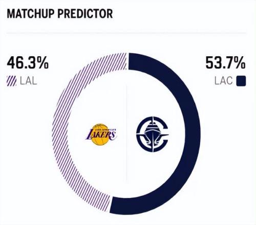 赛前,美媒ESPN对本场比赛进行了胜率预测,湖人胜率仅有46.3% ,稍占劣势,快船队胜率则为53.7% 。 首发阵容方面,快船队这边, 伦纳德迎来复出,教练排出的最新首发五人组为:詹姆斯-哈登、克里斯-邓恩、科怀-伦纳德、约翰-科林斯、伊维察-祖巴茨;湖人队这边,里夫斯(左小腿拉伤)缺阵,首发阵容则为:卢卡-东契奇、马库斯-斯马特、杰克-拉拉维亚、勒布朗-詹姆斯、德安德烈-艾顿。